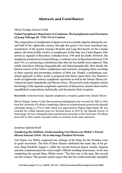 - International Musicological Society, Abstracts and Contributors , Acta Musicologica: Vol. 95 • No. 2 (2023)